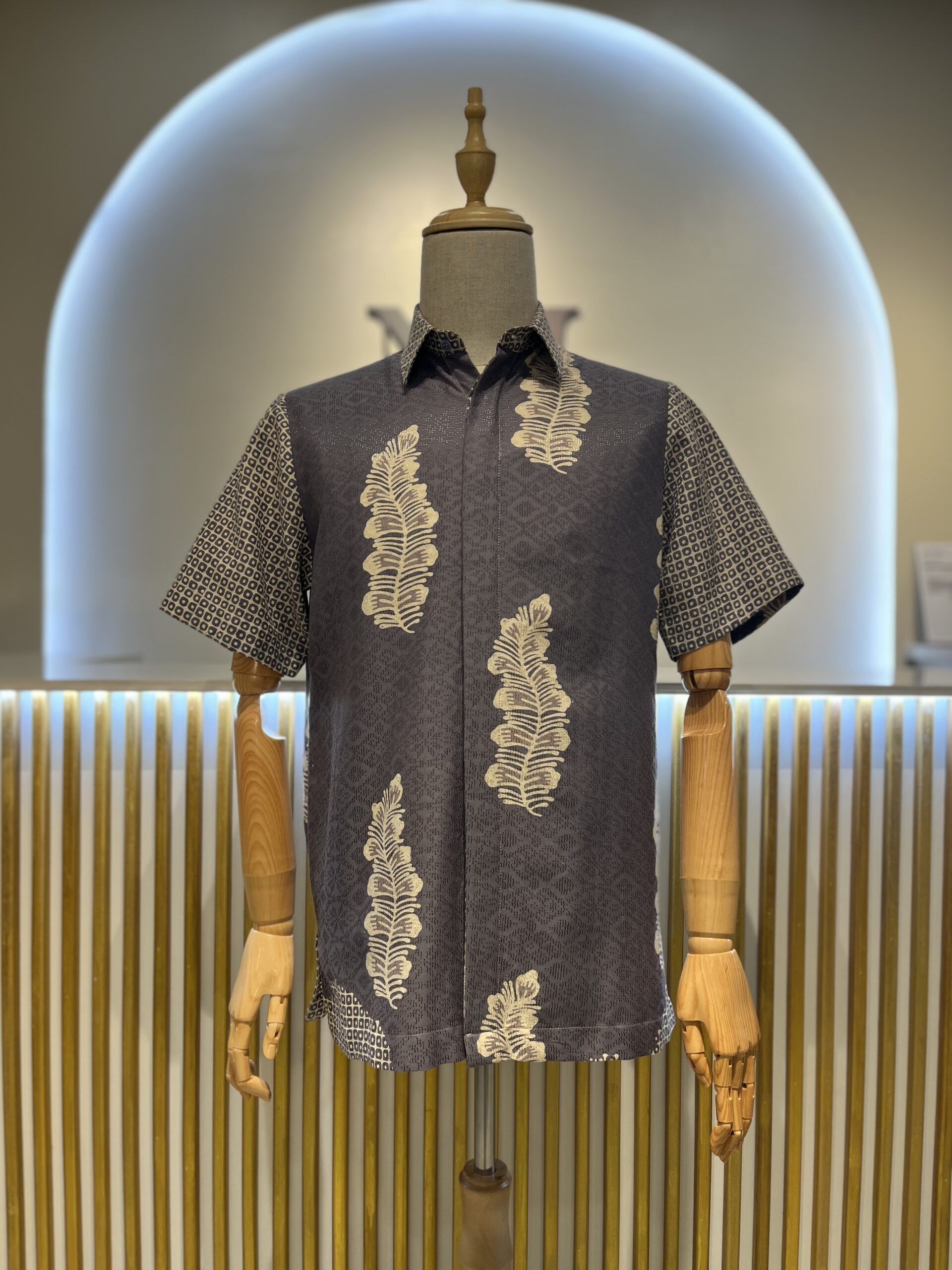 Material: Cotton dobby Cutting: Regular fit Colour: Grey & white
