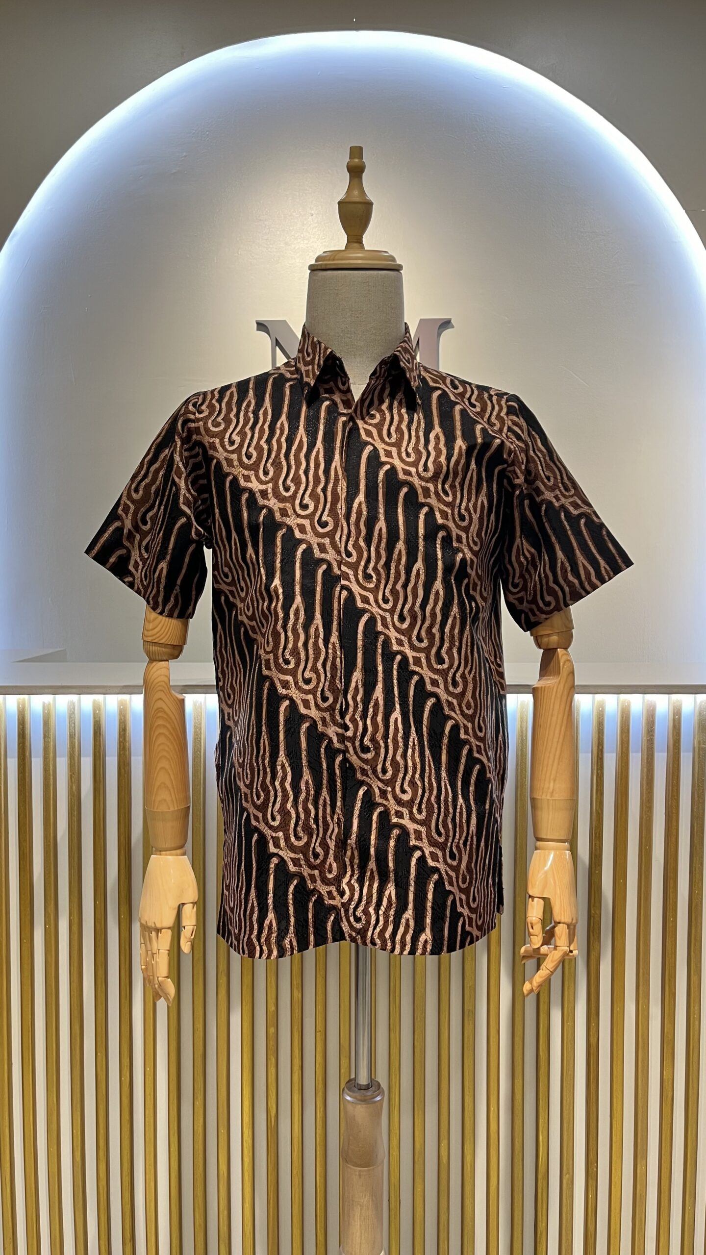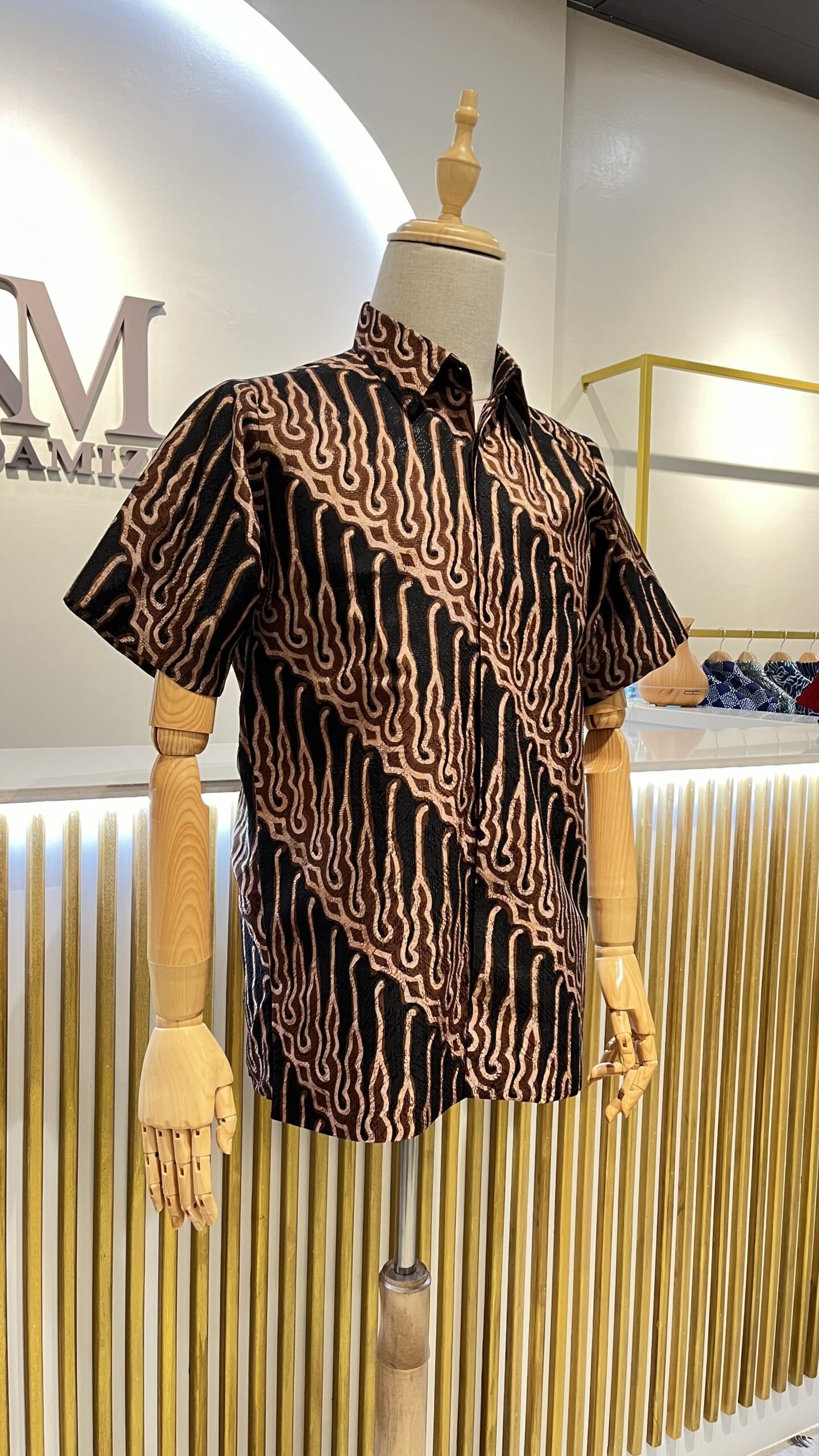 Embrace a sophisticated look with our black and brown batik shirt.