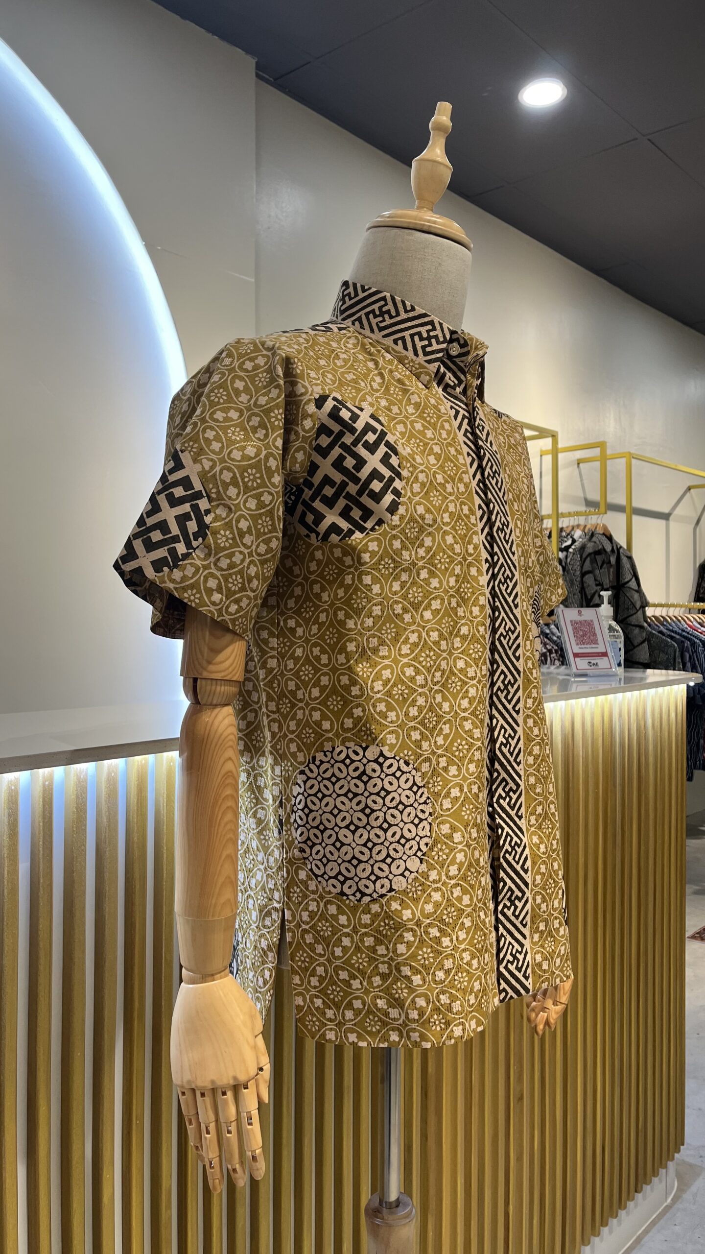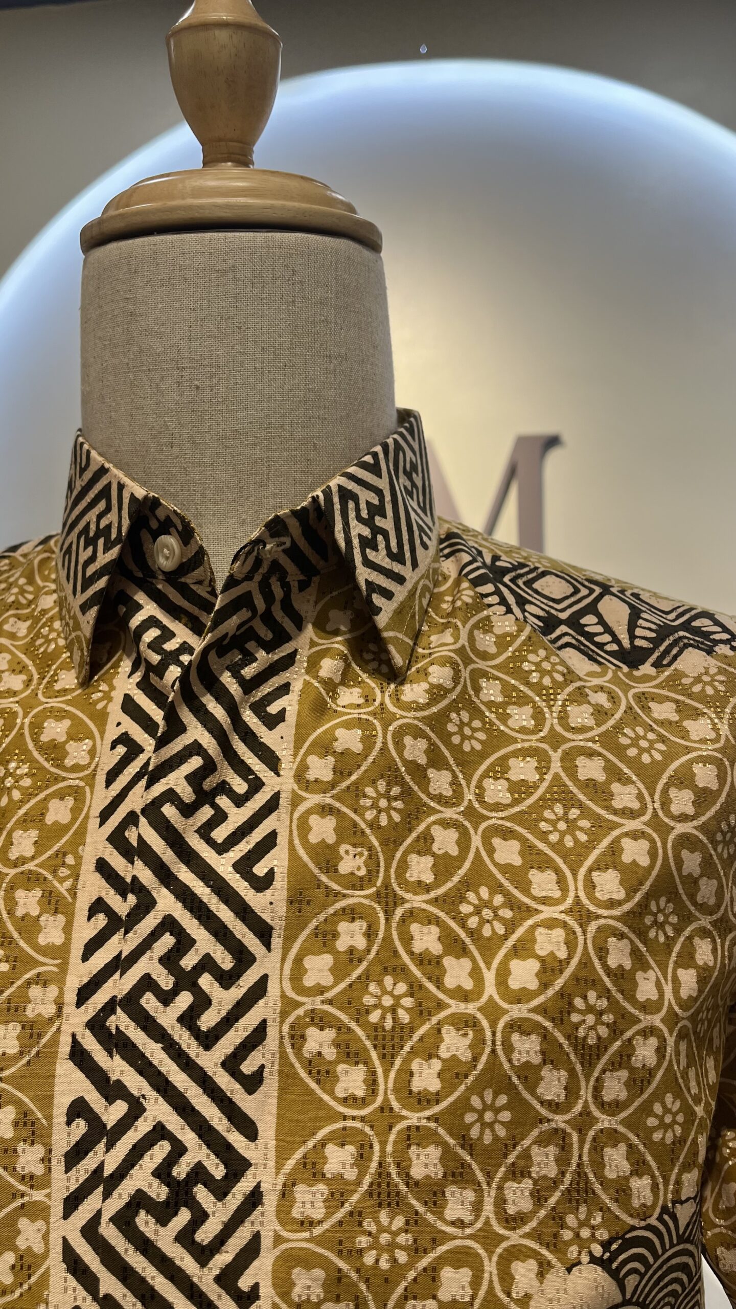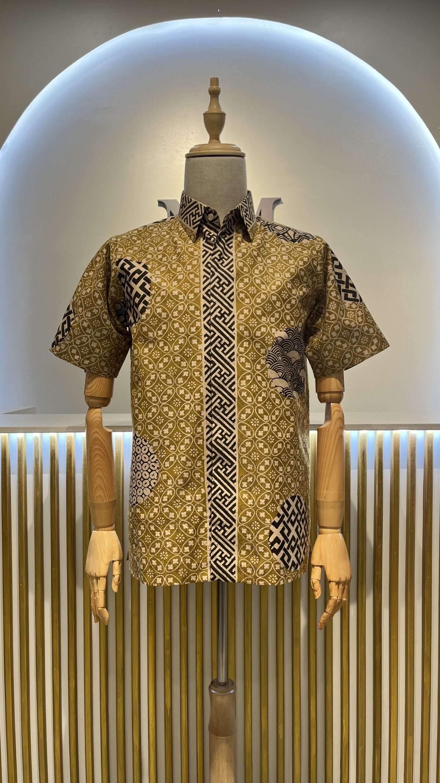 The unique motif of Kawung batik with golden yellow and dark brown color.