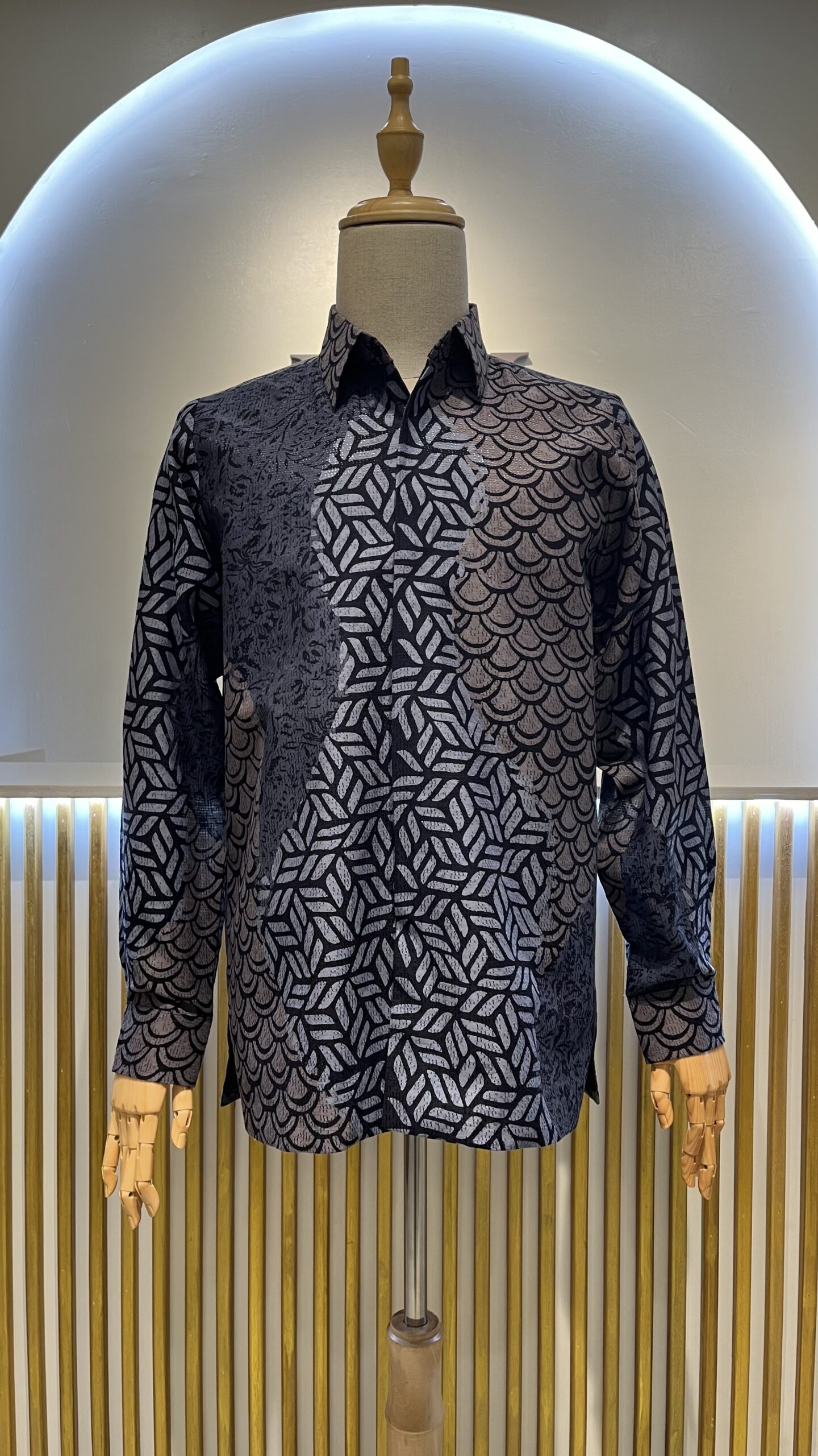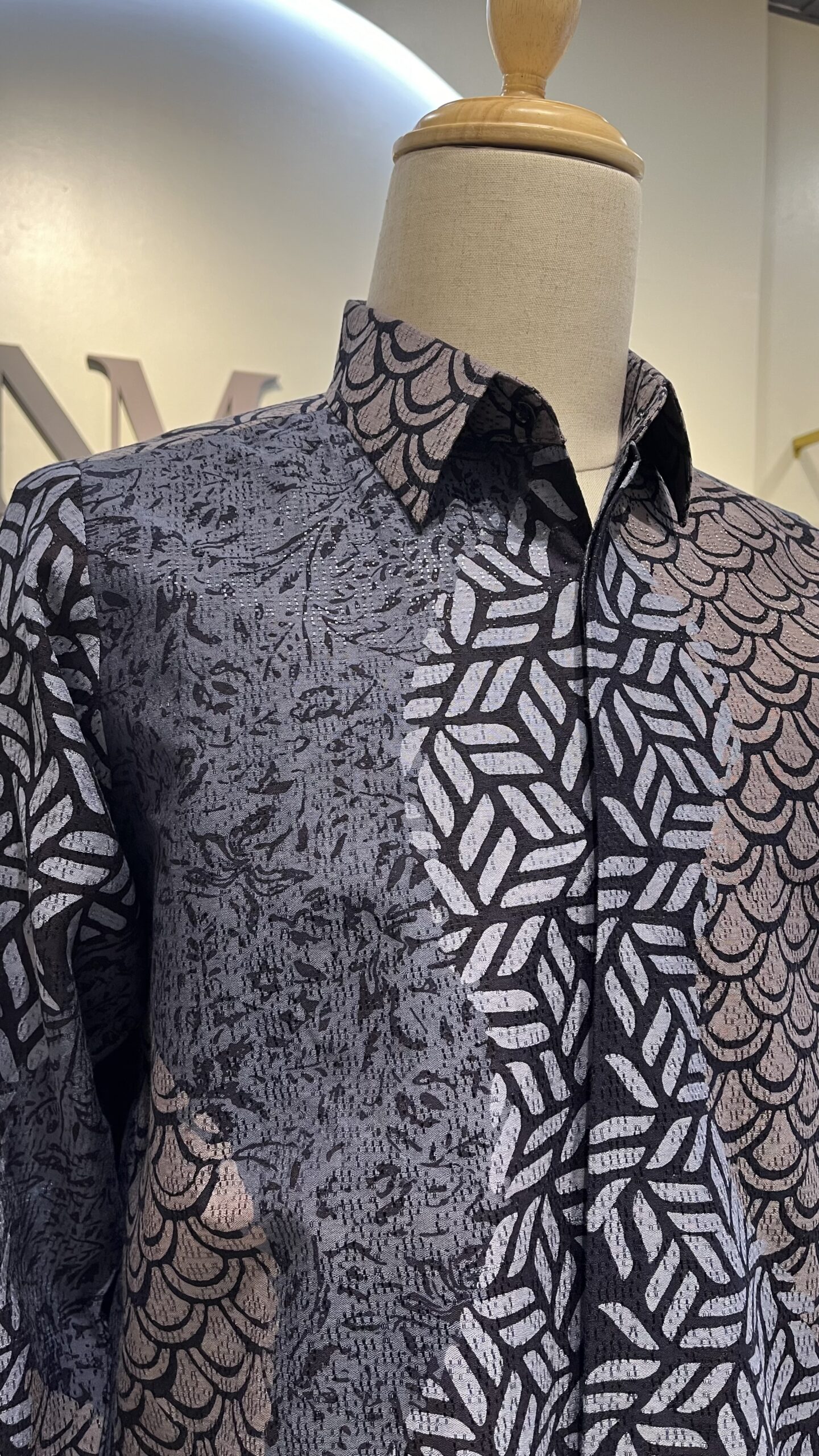 Material: Cotton dobby Cutting: Regular fit with lining Colour: Blue, grey & light brown
