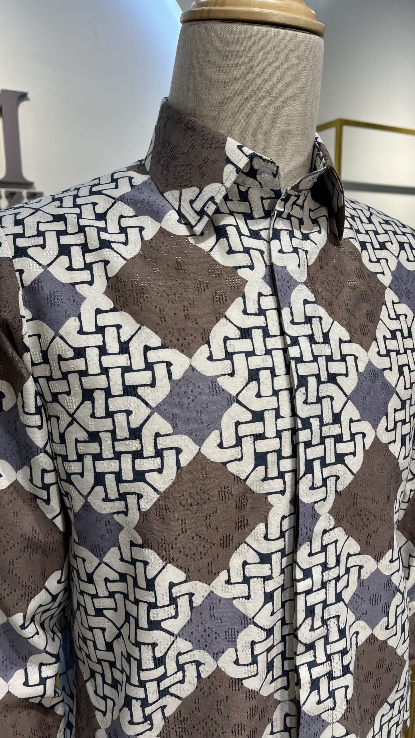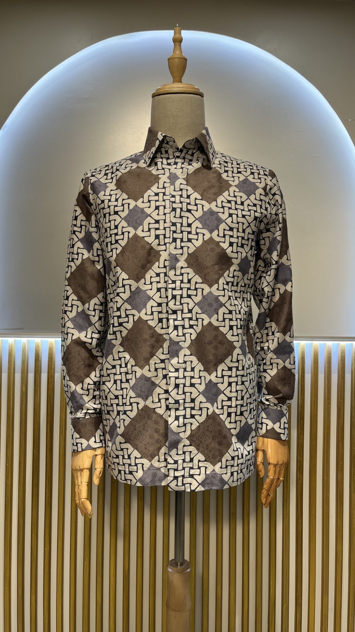 Material: Cotton dobby Cutting: Regular fit Colour: Brown & grey