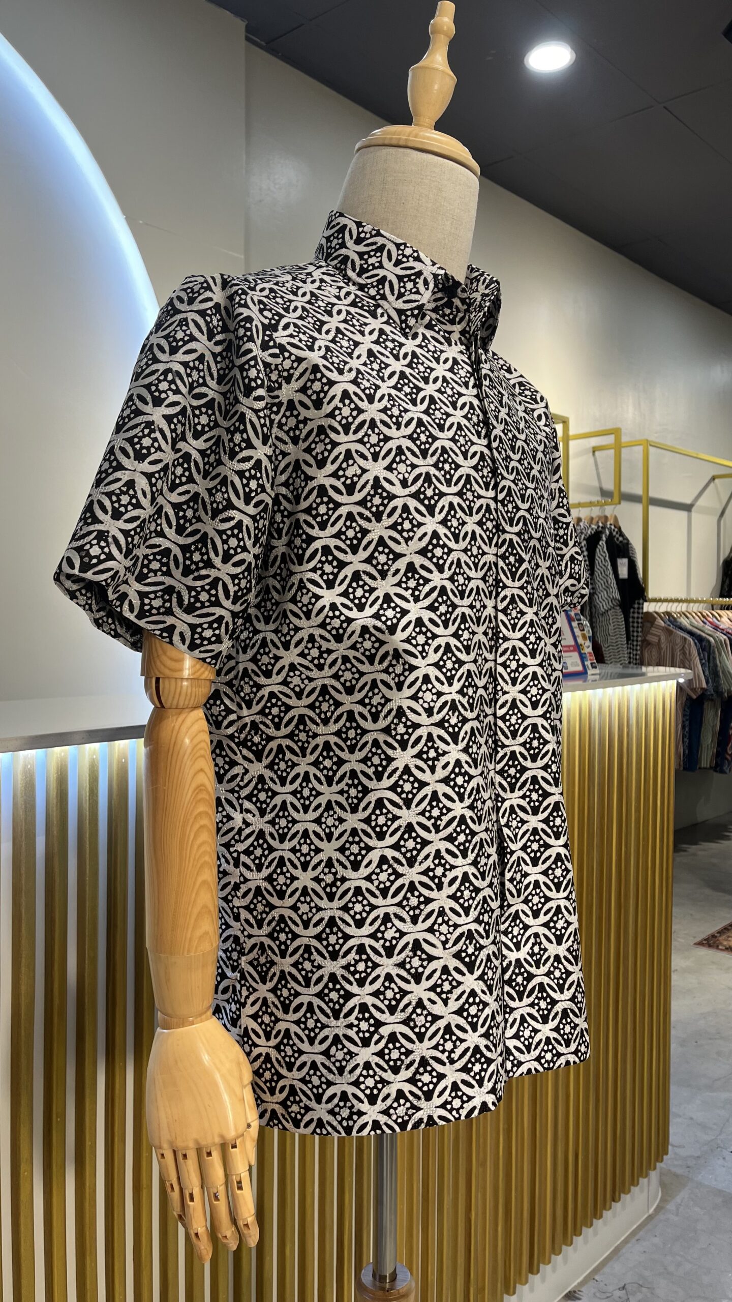 Material: Silky Viscose Cutting: Regular fit with lining Colour: Black & white