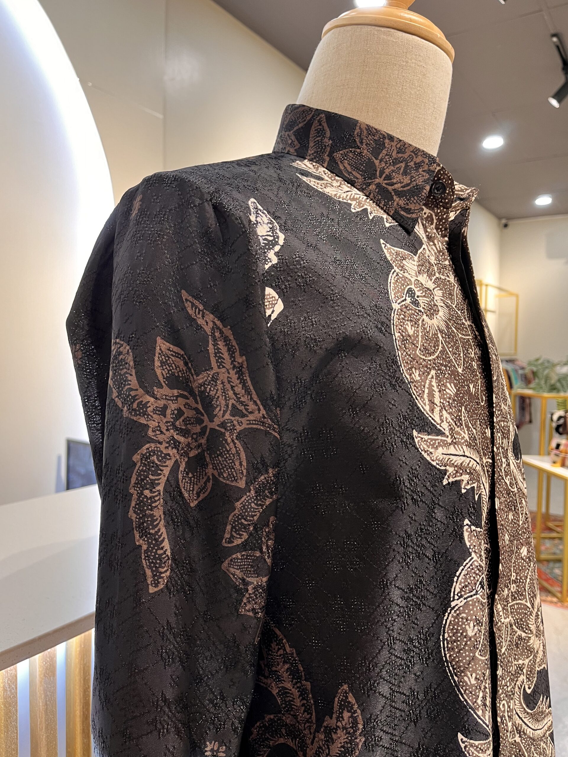 Very lightweight viscose fabric with a pleasant shine. Added with lining which instantly kicks the garment up a notch for a couture effect.