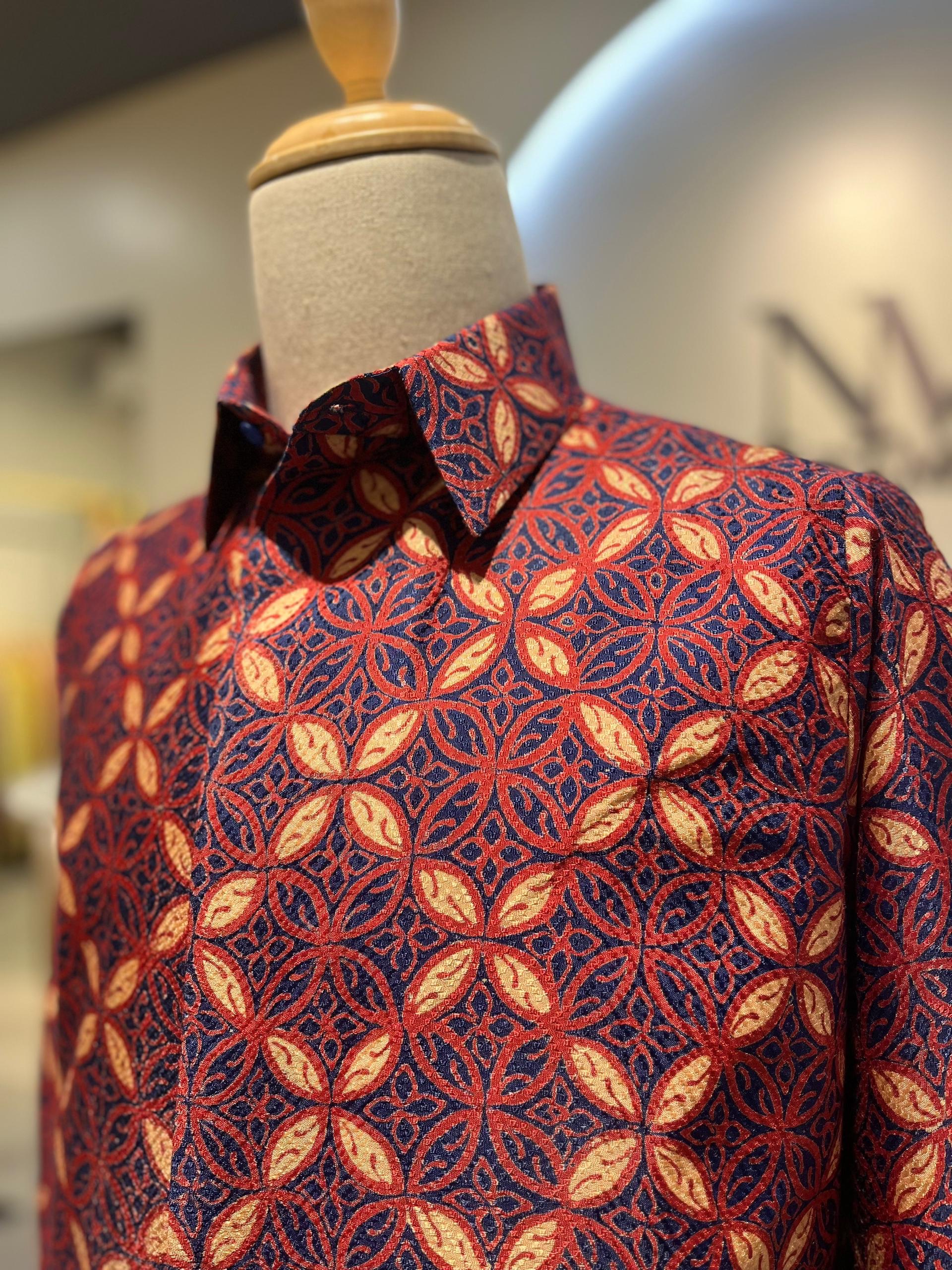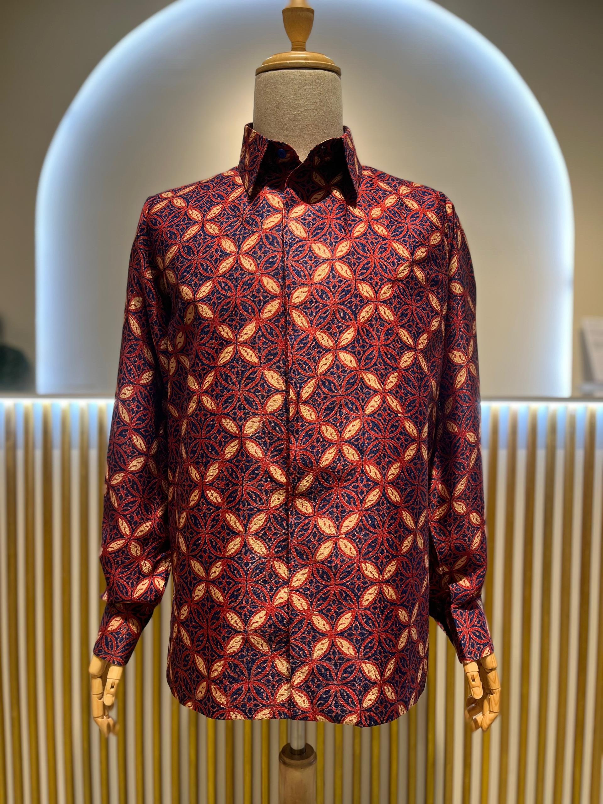 Batik Kawung. Crafted on a fabric with embroidered and subtle shine.