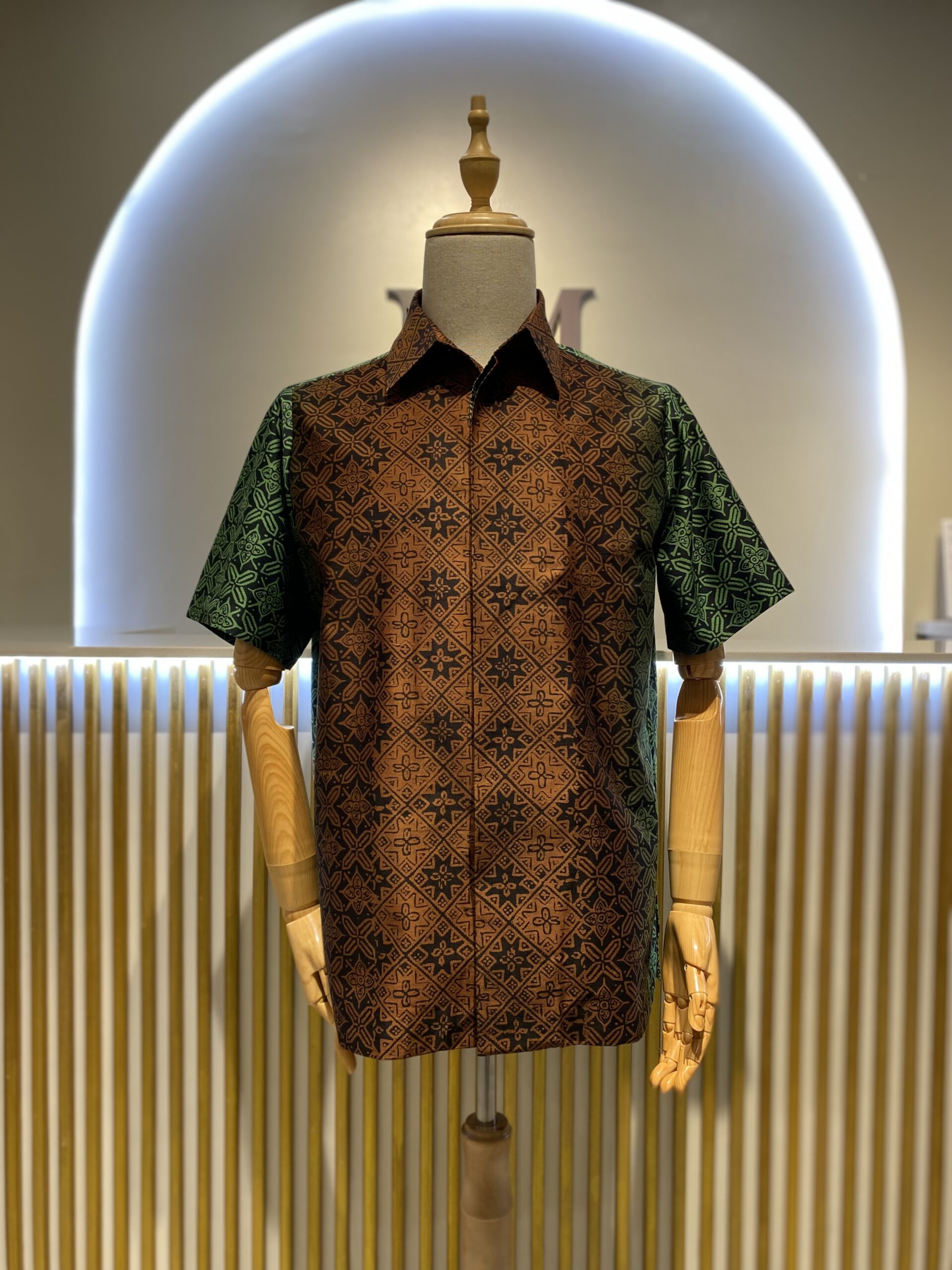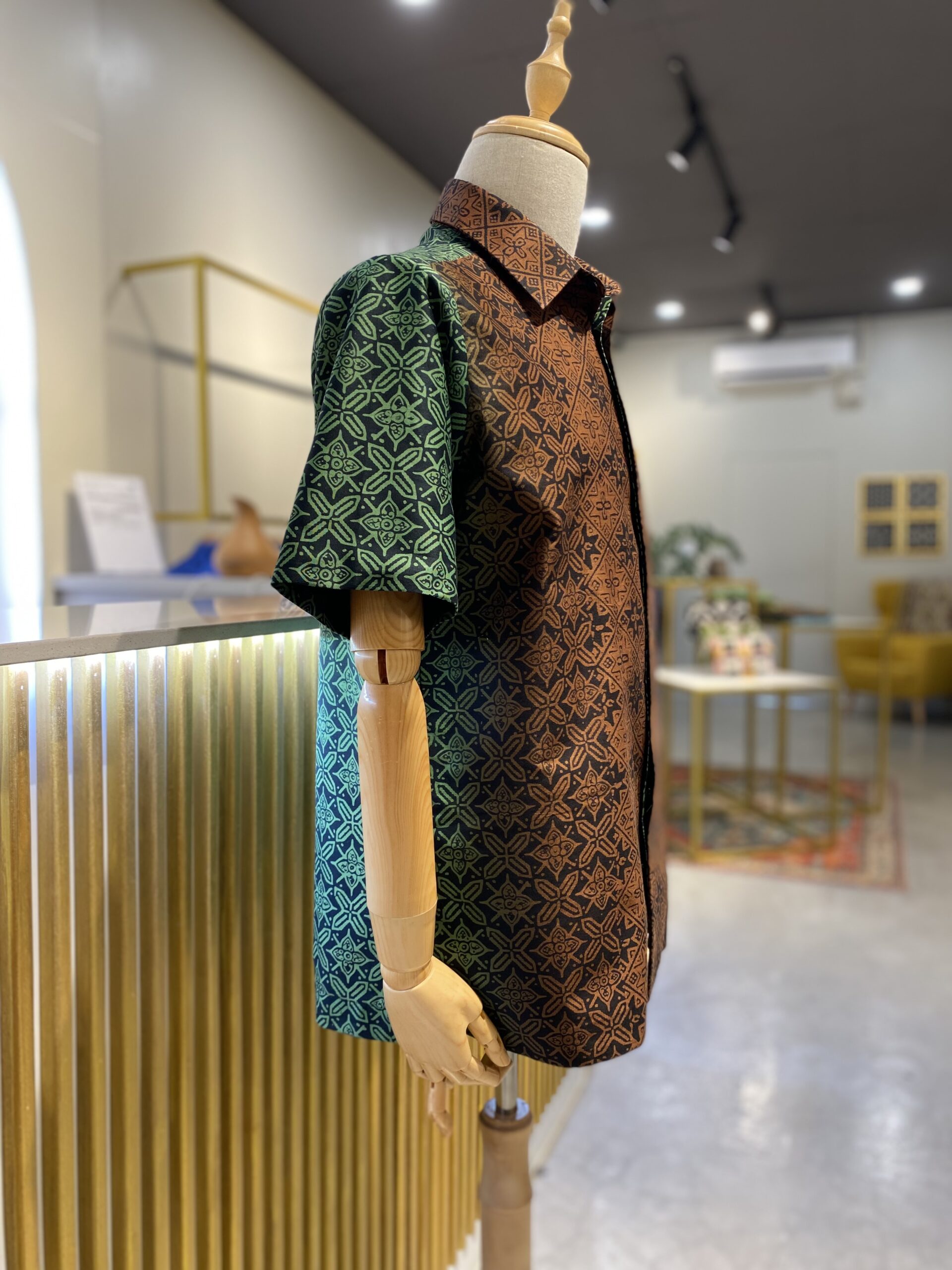 A traditional batik shirt with an exclusive and sophisticated touch, showcasing elegant two-tone colours.
