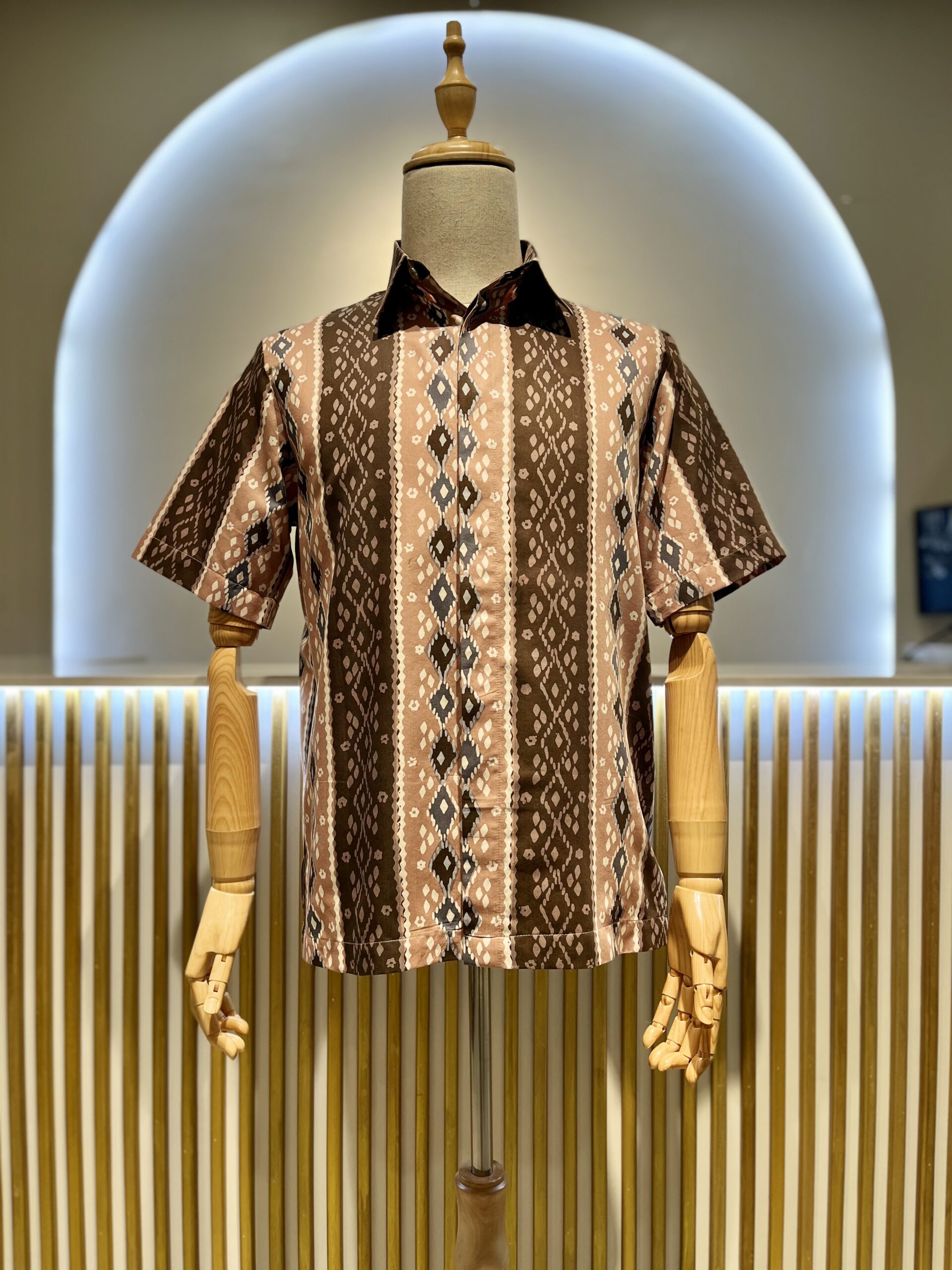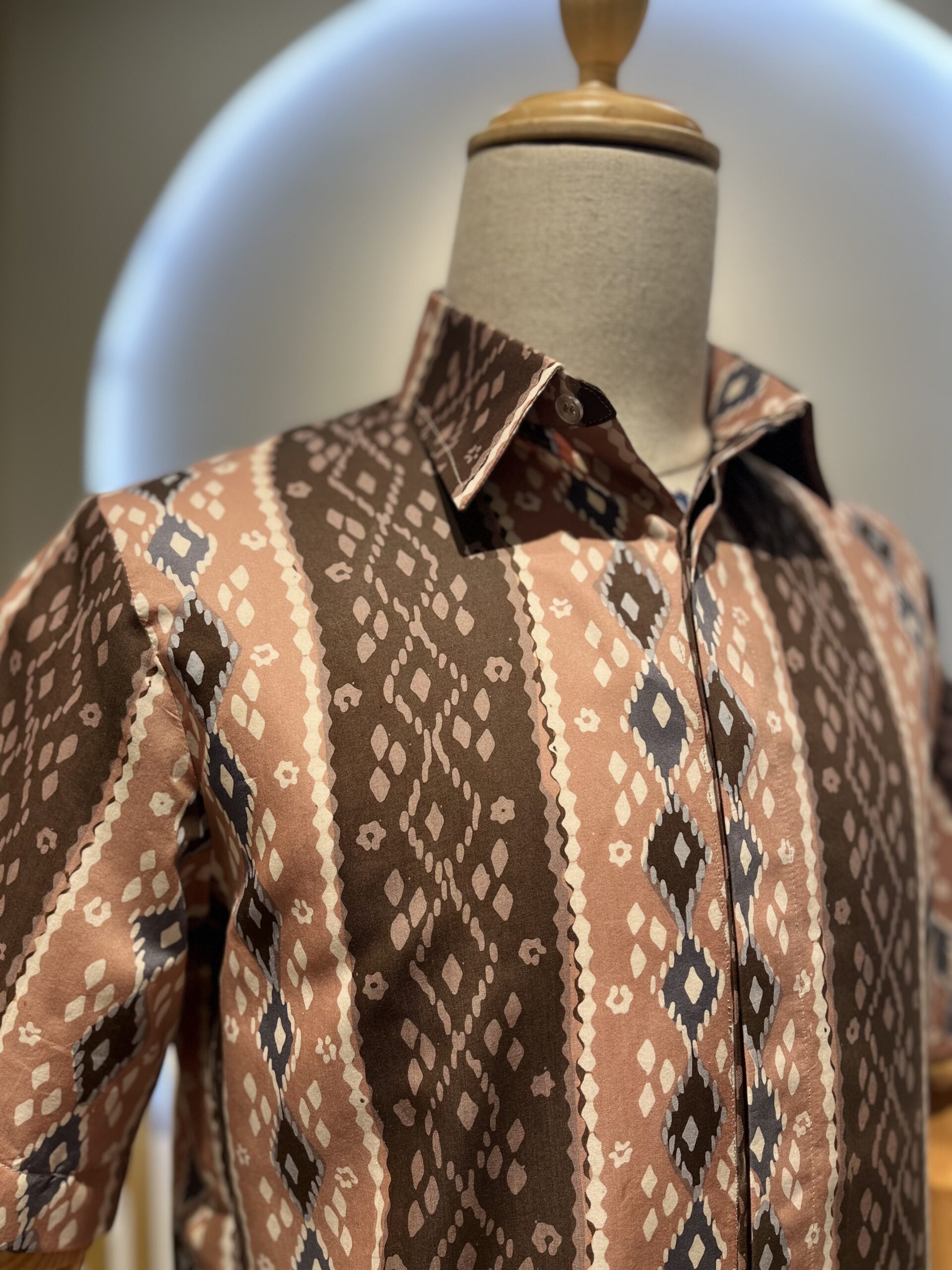This batik shirt blends natural warmth with timeless patterns, bringing tradition into a style made for today.