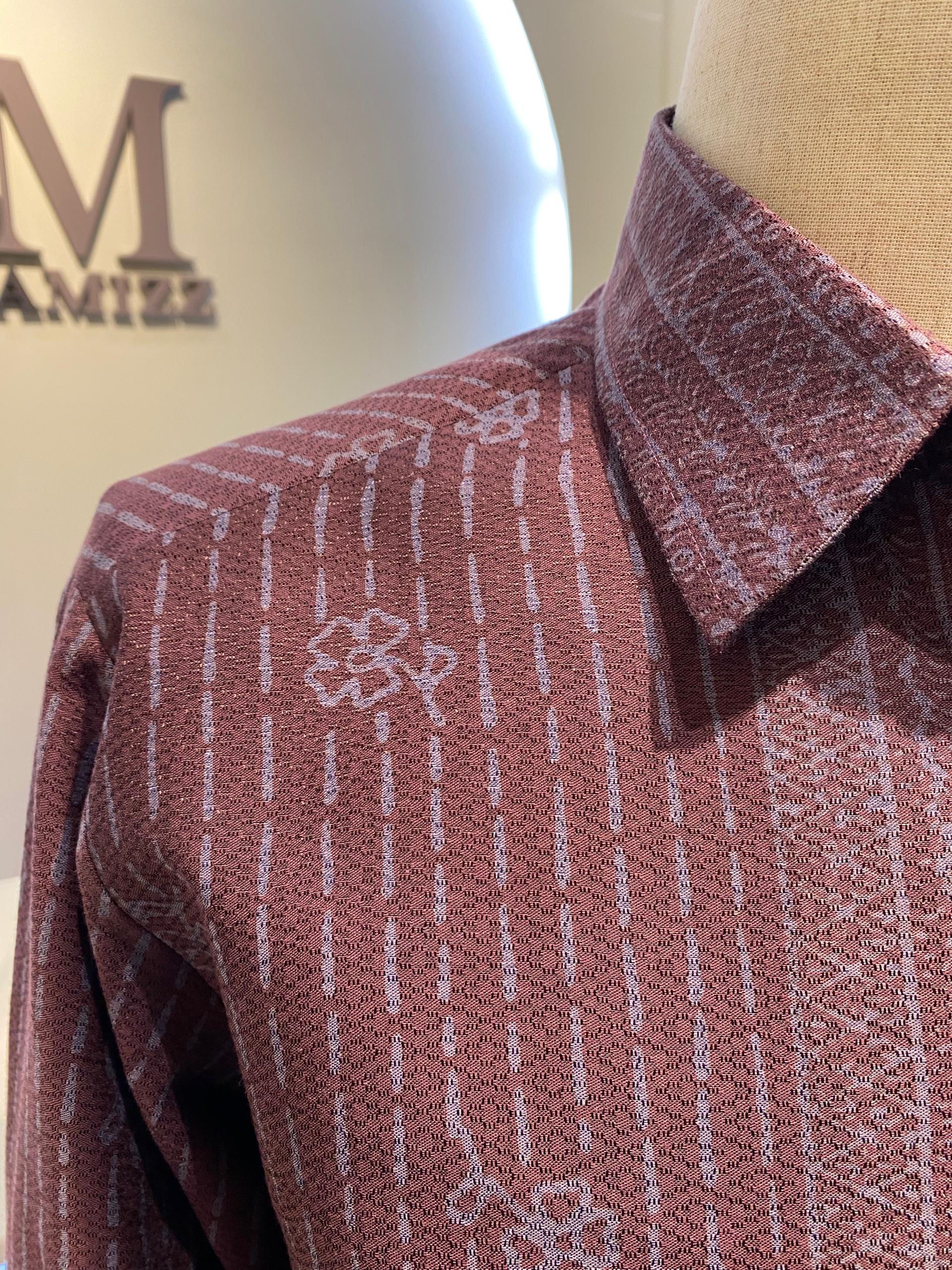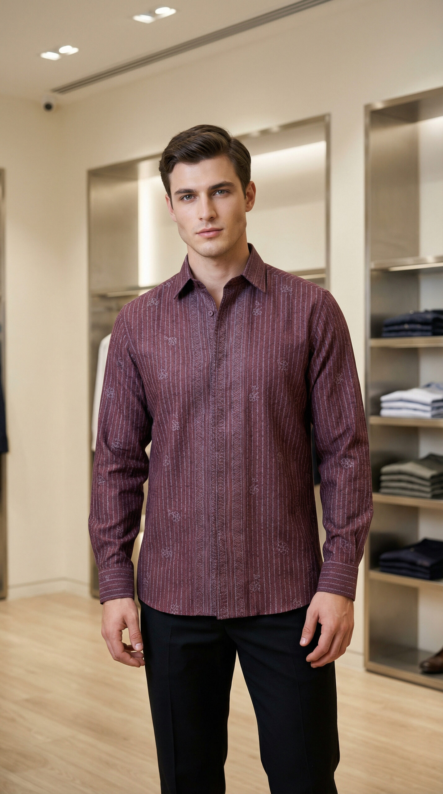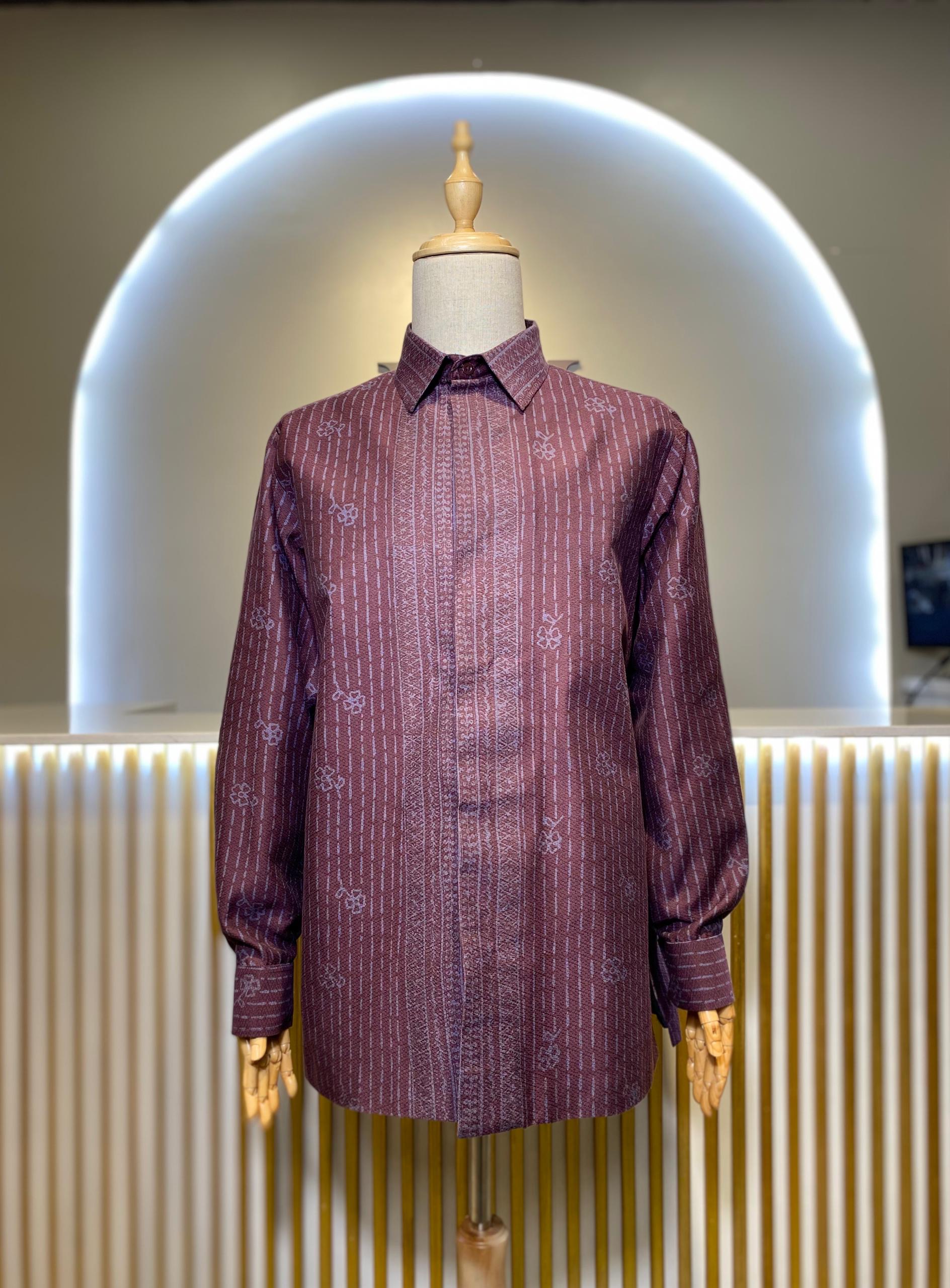 Refined in every detail — this deep maroon batik blends subtle motifs with a clean modern cut for effortless elegance.